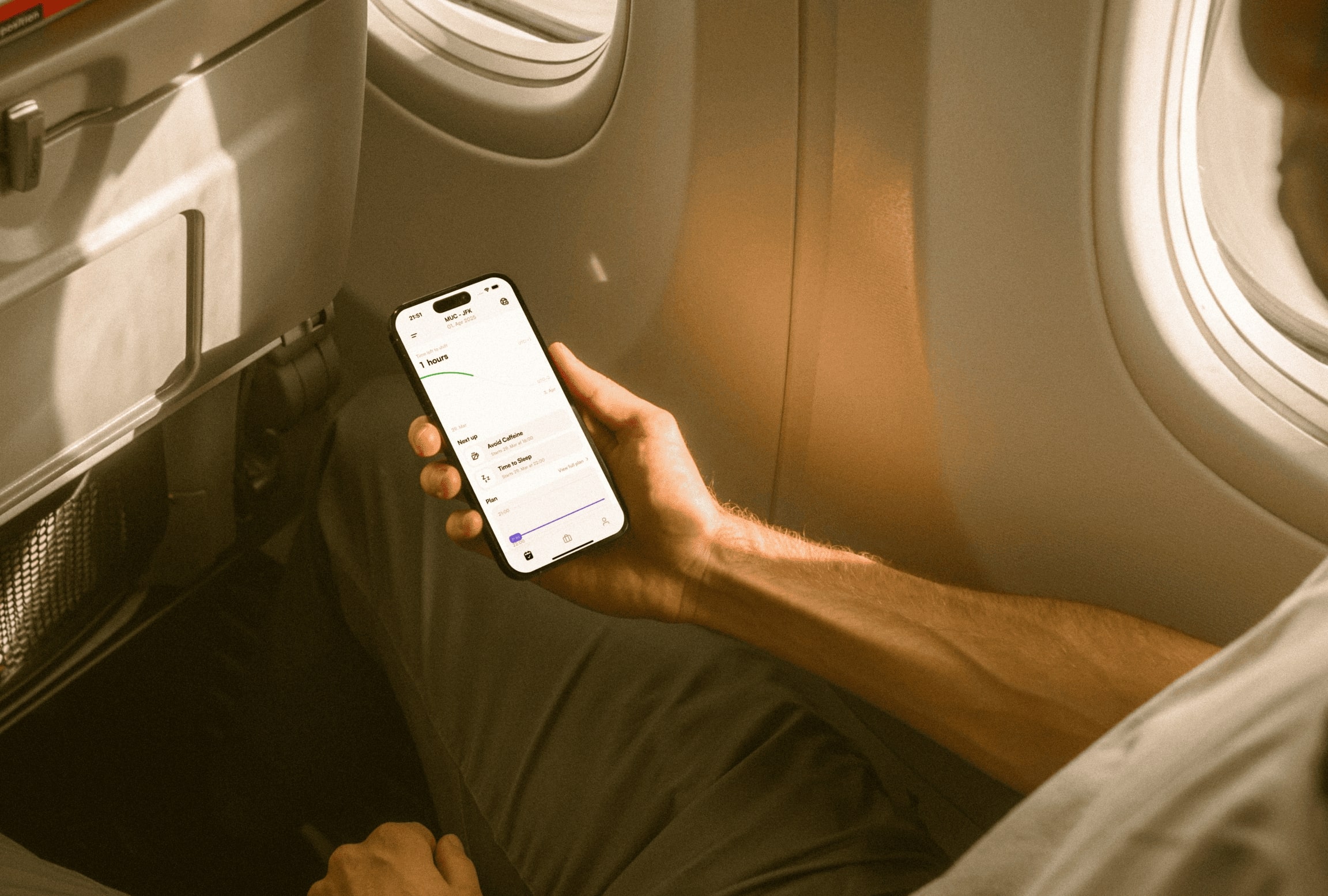 JetShift provides you with smart jetlag adjustments. Simply enter your flight details, and our app creates a step-by-step plan to help your body adjust faster - using your trip plan and preferences.